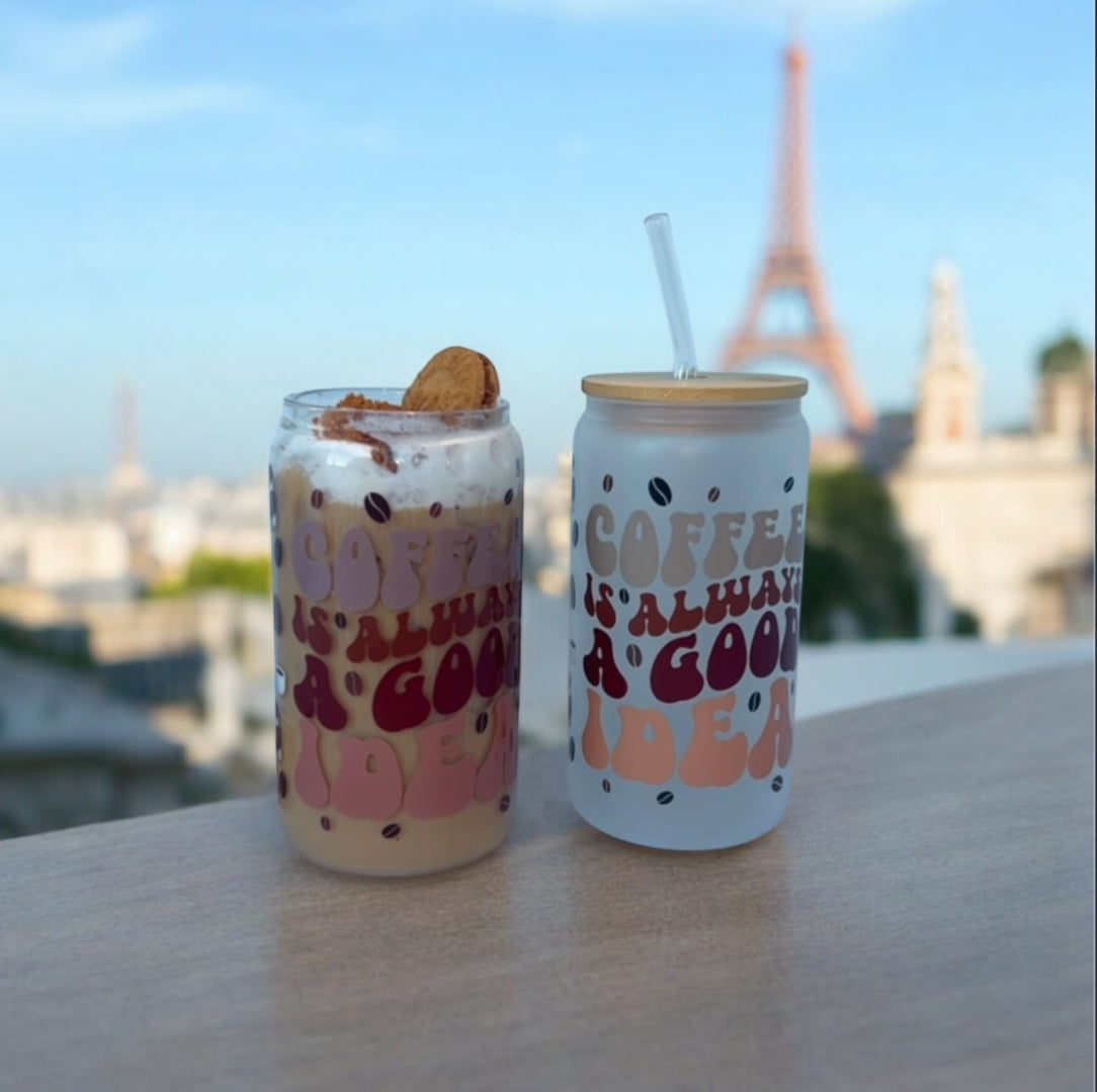 GLASS CUP 16oz. "COFFEE IS ALWAYS A GOOD IDEA"